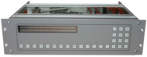 Schrittmotorensteuerung für bis zu 16 Achsen mit Folientastatur und 2 zeiligem VF Display